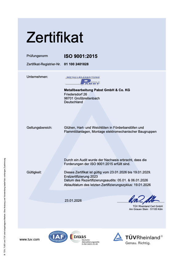 Kontinuierlich verbessern wir unsere Prozesse und aktualisieren unsere Zertifizierung nach DIN EN ISO 9001:2015.